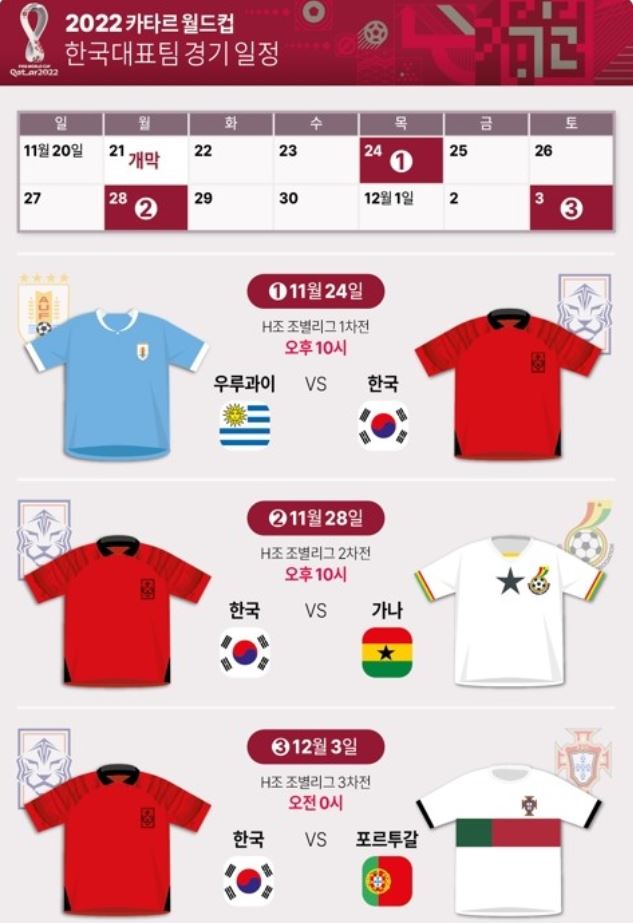 1) 우루과이 vs 대한민국 (11월24일 목요일 22:00)