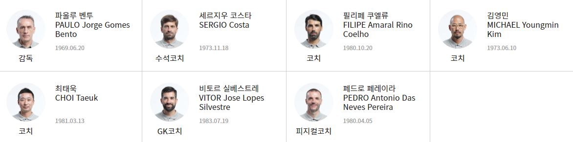 1) Coach(감독 및 코치진)