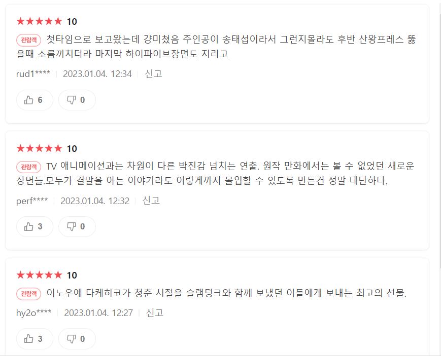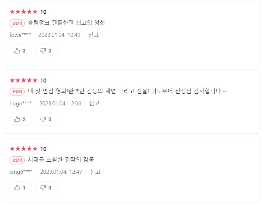 슬램덩크 극장판 '더 퍼스트 슬램덩크' 국내 관람객 반응